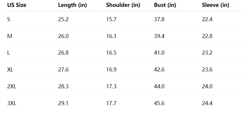 Size Chart (US, Bust Circumference):
