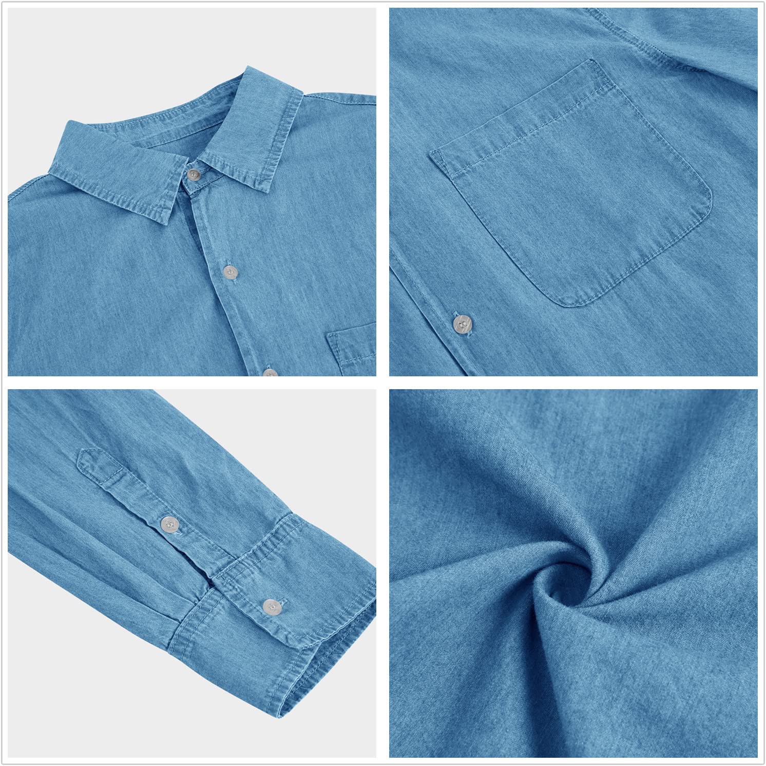 • This men's denim style shirt is made of high-quality materials that are durable, wrinkle-resistant, lightweight, and soft to the touch.